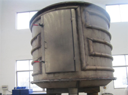 1、常壓型:原筒或八棱柱形,有整體和對(duì)開兩種結(jié)構(gòu)。加熱介質(zhì)進(jìn)出口主管道可以在殼體內(nèi),也可以在殼體外。