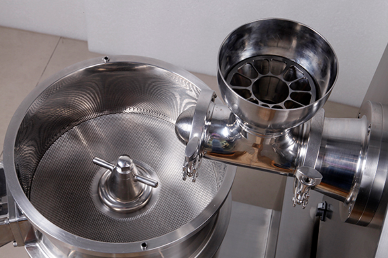 將第一步制成的塑性濕料或濕粒置擠壓機(jī)內(nèi),經(jīng)螺旋推進(jìn)或輾滾等擠壓方式將濕料通過(guò)具一定直徑的孔或篩,壓擠成圓柱形條狀擠出物。擠出條狀物應(yīng)表面光滑,擠出物常應(yīng)擠出壓力發(fā)熱,長(zhǎng)期連續(xù)生產(chǎn),發(fā)熱現(xiàn)象更為明顯?,F(xiàn)已有帶低溫冷卻的擠出機(jī)問(wèn)世,為熱敏性物料的連續(xù)大生產(chǎn)提供了可靠的技術(shù)保證。