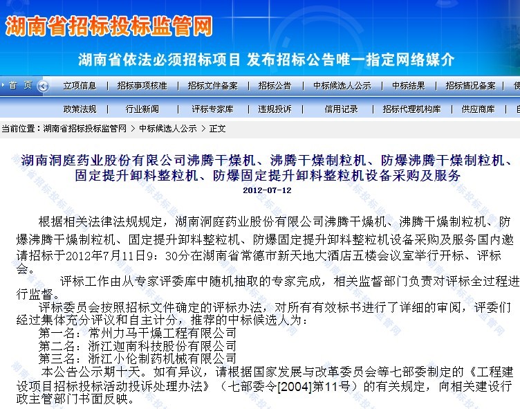 《力馬中標(biāo)洞庭藥業(yè)干燥制粒設(shè)備》