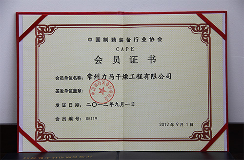 智能回轉(zhuǎn)真空 | 中國機械工程學會 | 中國制藥裝備行業(yè)協(xié)會-會員證書 |
